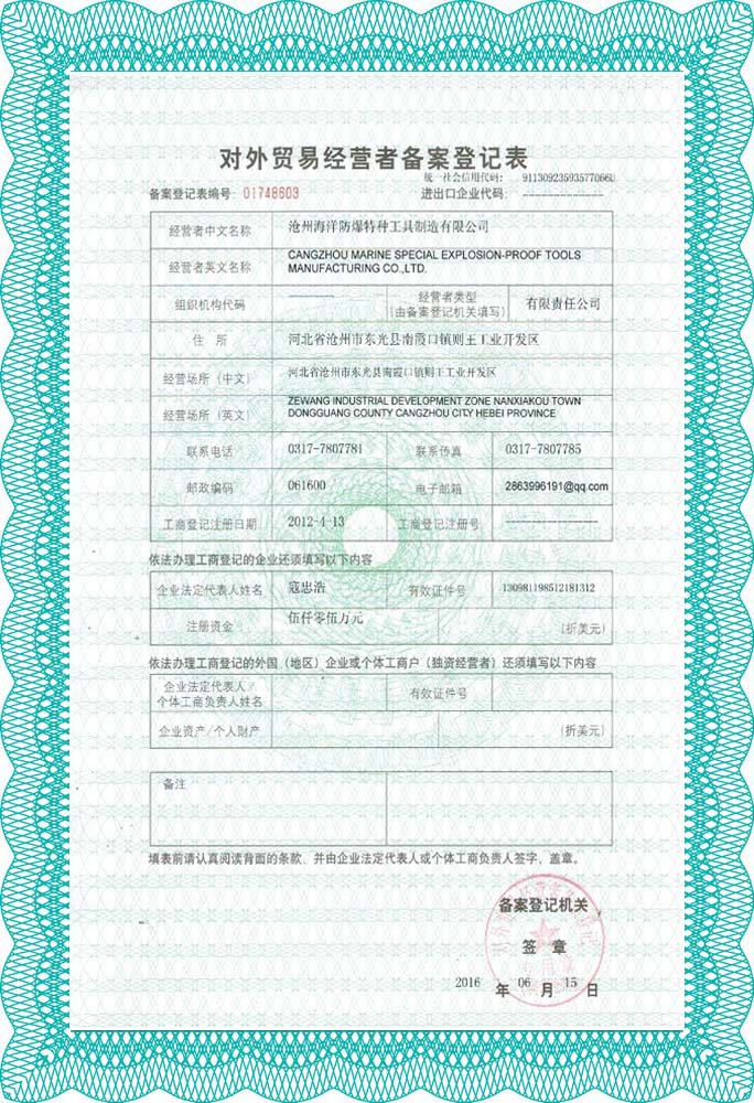 滄州海洋防爆特種工具制造有限公司 >