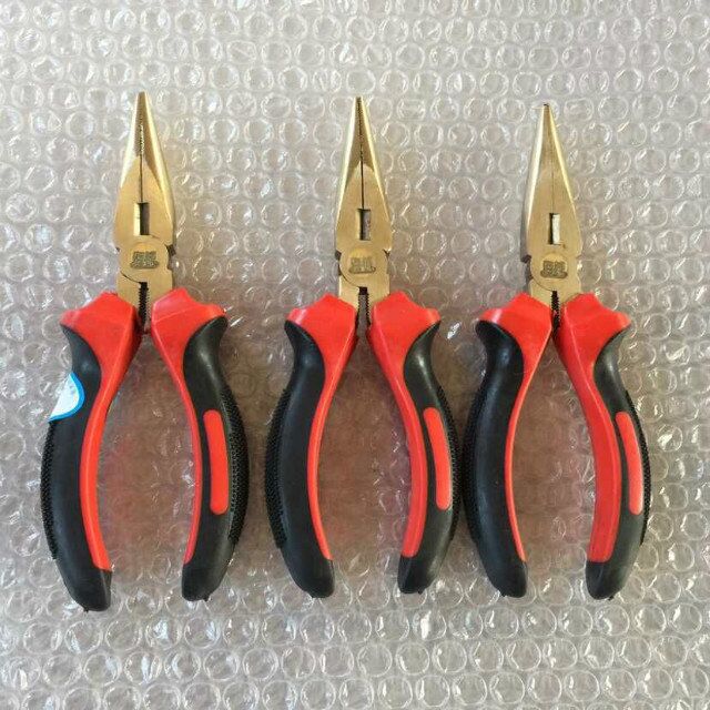 海洋防爆尖嘴鉗別名:修口鉗、尖頭鉗、尖咀鉗。它是由尖頭、刀口和鉗柄組成,電工用尖嘴鉗的 鉗柄上套有額定電壓500V的絕緣套管。是一種常用的鉗型工具。海洋防爆尖嘴鉗是 由銅和其他的稀有金屬進(jìn)行合金鑄造成形,然后再經(jīng)過一系列的加工處理后成為成品,此類產(chǎn)品由于材質(zhì)的特殊性而使產(chǎn)品具備了防爆的功能。防爆尖嘴鉗一般是由 兩種材質(zhì)的產(chǎn)品:(鋁青銅)和】(鈹青銅),其中鋁青銅的工作面硬度HRC為25°以上,抗拉強(qiáng)度δ b>75-85kgf/mm2,其它技術(shù)指標(biāo)全部達(dá)到外同類產(chǎn)品先進(jìn)水平;鈹青銅的工作面硬度HRC為35°以上,抗拉強(qiáng)度δ b>105-120kgf/mm2,基它技術(shù)指標(biāo)全部達(dá)到外同類產(chǎn)品先進(jìn)水平。這兩種材質(zhì)的產(chǎn)品同時能夠起到防爆的功能,其中的鈹青銅產(chǎn)品還具備 防磁的功能(適用于要求更加嚴(yán)格的工作場所)。海洋防爆尖嘴鉗與普通的尖嘴鉗不同,這是一種在特殊工作場所里使用的手動工具,其材質(zhì)的特殊性起到了關(guān)鍵性的作用,可以為特殊行業(yè)里的工作人員來使用完成特殊的維修工作。防爆尖嘴鉗在易燃、易爆等特殊的工作場所里使用時,不會因為夾斷鐵絲、拔出鐵器、敲擊其他的物體而產(chǎn)生機(jī)械火花引發(fā)安全事故的發(fā)生,所以說防爆尖嘴鉗是一種絕對安全的鉗工類工具產(chǎn)品。海洋防爆鉗子類工具還有:防爆皮帶鉗、防爆斷線鉗、防爆胡桃鉗、防爆水泵鉗、防爆鯉魚鉗、防爆斜口鉗、防爆扁嘴鉗等。海洋銷售熱線:18330709306(寇經(jīng)理)同微信。