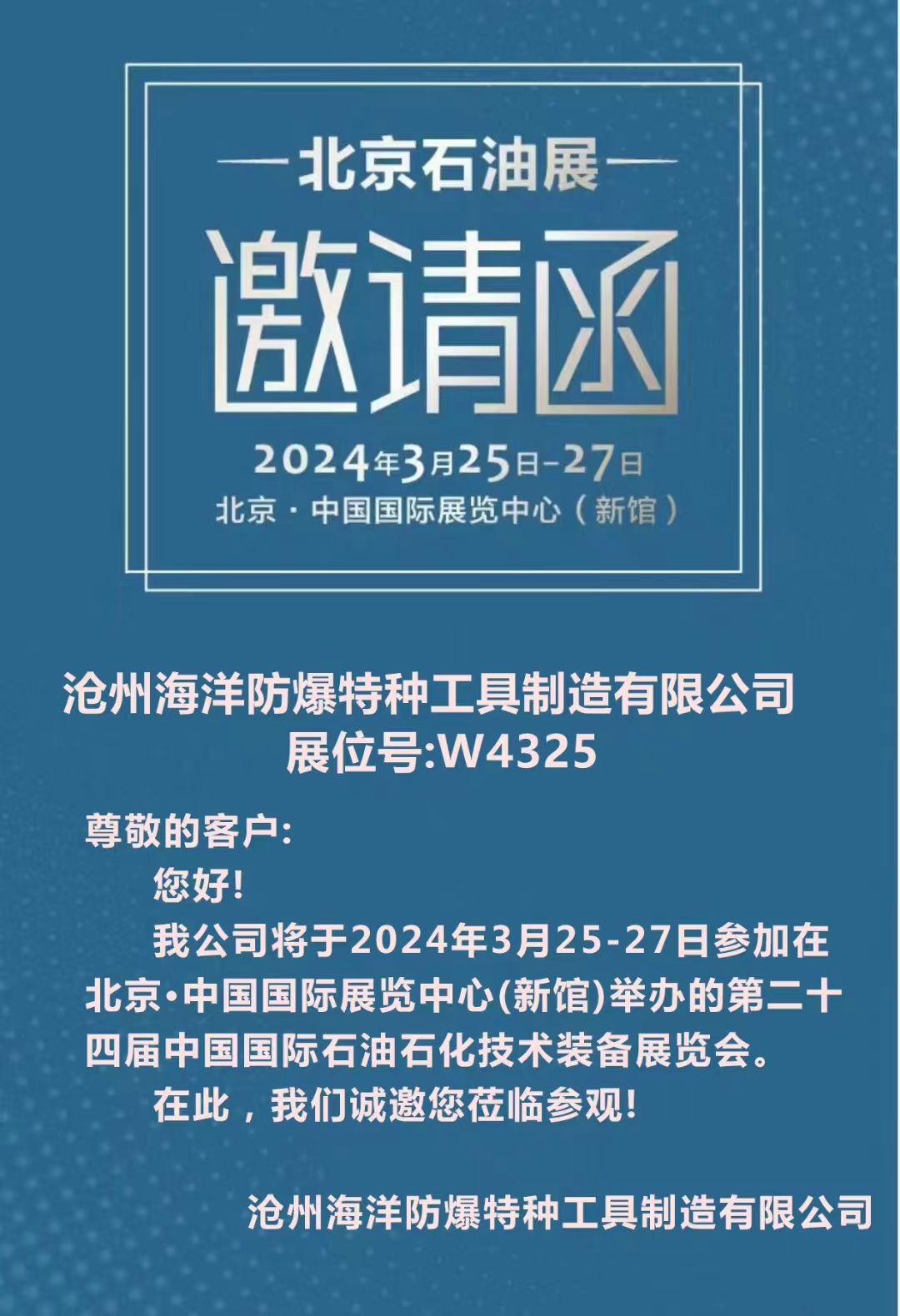 2024年3月25-27日參加在北京·中國國際展覽中心(新館)舉辦的第二十四屆中國國際石油石化技術(shù)裝備展覽會。