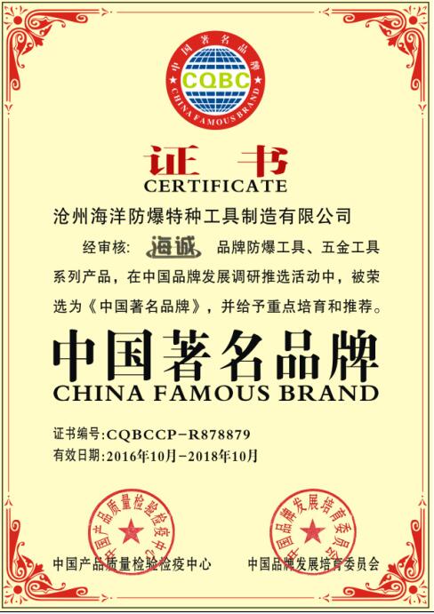 “海誠”商標榮獲中品,標志著我公司生產(chǎn)的設(shè)備和技術(shù)達到水平,產(chǎn)品質(zhì)量得到了廣大客戶的喜愛與推廣。我公司(海洋防爆工具)將不忘初心,始終站在時代前言,用海洋人的勤勞和智慧譜寫著海洋輝煌的明天。