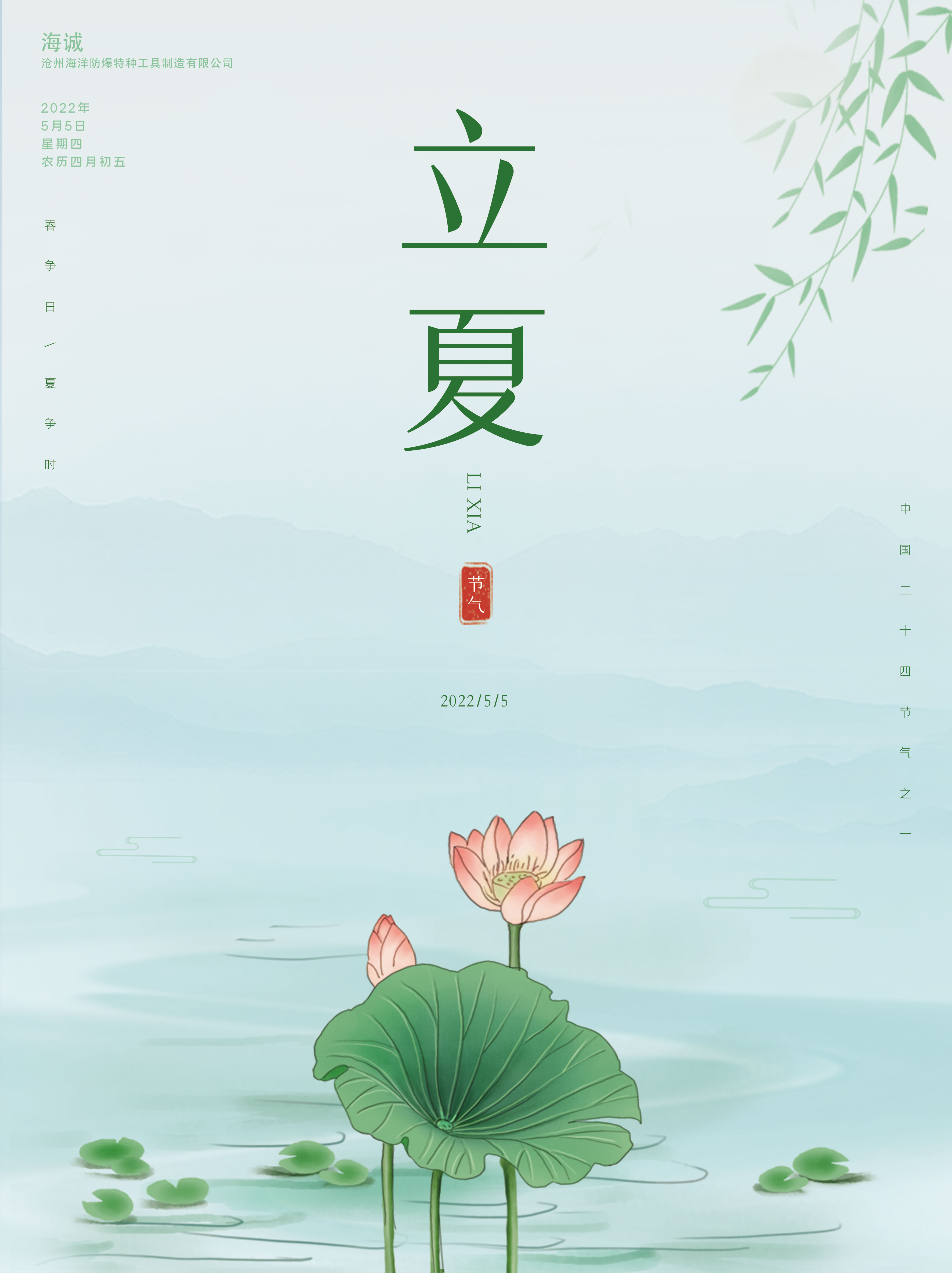 立夏表示告別春天,是夏天的開(kāi)始。春生、夏長(zhǎng)、秋收、冬藏,時(shí)至立夏,萬(wàn)物繁茂。由于我國(guó)幅員遼闊、南北跨度大,各地自然節(jié)律不一。立夏時(shí)節(jié),我國(guó)只有福州到南嶺一線以南地區(qū)進(jìn)入"綠樹(shù)濃陰夏日長(zhǎng),樓臺(tái)倒影入池塘"真正意義上的夏季;而東北和西北的部分地區(qū)這時(shí)則剛剛有春天的氣息。若按我國(guó)現(xiàn)代氣候?qū)W(候平均氣溫)的劃分標(biāo)準(zhǔn),日平均氣溫穩(wěn)定升達(dá)22℃以上為夏季開(kāi)始。