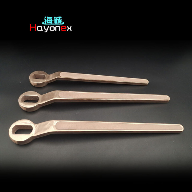 防爆橢圓閥門扳手,它的常用的尺寸為18*12mm、20*14mm、22*15mm、24*16mm和28*18mm。這種扳手主要用于開啟和關(guān)閉橢圓閥門。其材質(zhì)分為鋁青銅和鈹青銅兩種材質(zhì)。表面處理的顏色是原銅色。具有結(jié)構(gòu)穩(wěn)定、材質(zhì)密度高、抗打擊能力強(qiáng)、經(jīng)久耐用的特點。這款扳手是設(shè)備安裝、調(diào)試、維修和檢修工作必用的工具。適用于石油,化工等易燃易爆場所。