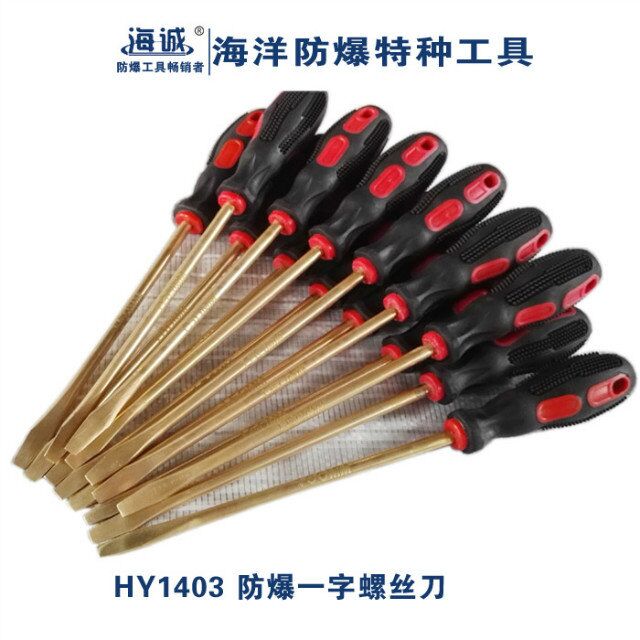 防爆工具 、防爆螺絲刀,均采用鋁青銅合金、鈹青銅合金制作,是我們常規(guī)的防爆螺絲刀的樣式,工作端為一字(十字),橡膠手把。一種用來(lái)擰轉(zhuǎn)螺絲釘以迫使其位的工具,通常有一個(gè)薄楔形頭,可插入螺絲釘頭的槽縫或凹口內(nèi)――亦稱“改錐”。主要有兩種規(guī)格一字(負(fù)號(hào))和十字(正號(hào))。常見(jiàn)的還有六角螺絲刀,包括內(nèi)六角和外六角兩種。防爆螺絲刀又區(qū)分為傳統(tǒng)螺絲起子(英文:Screwdriver)和棘輪螺絲起子(電動(dòng)螺絲起子)(英文:Ratchet screwdriver)。傳統(tǒng)的防爆螺絲刀是由一個(gè)塑膠手把外加一個(gè)可以鎖螺絲的鐵棒,而棘輪螺絲起子則是由一個(gè)塑膠手把外加一個(gè)棘輪機(jī)構(gòu)。后者讓鎖螺絲的鐵棒可以順時(shí)針或逆時(shí)針空轉(zhuǎn),借由空轉(zhuǎn)的機(jī)能達(dá)到促進(jìn)鎖螺絲的效率,而不需逐次將動(dòng)力驅(qū)動(dòng)器(手)轉(zhuǎn)回原本的位置。防爆旋具還包括:防爆敲擊螺絲刀、防爆星型螺絲刀、、、、
